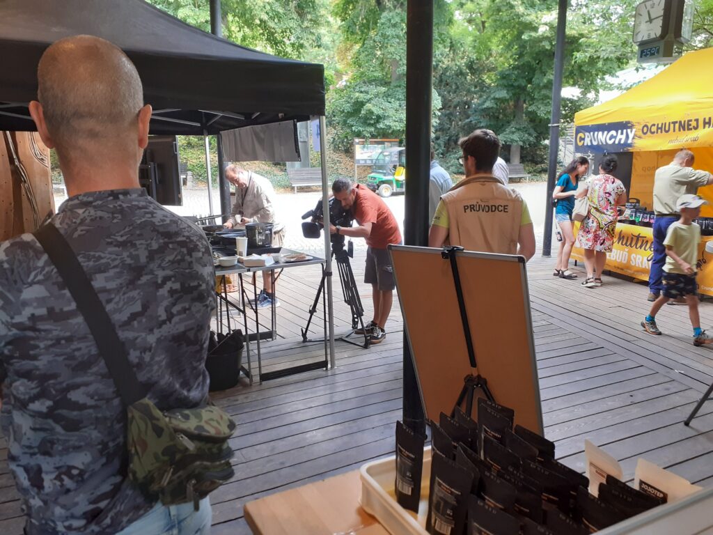 Tento víkend proběhla v pražské ZOO akce „Víkend hmyzožravců“, jejímž cílem bylo umožnit návštěvníkům vyzkoušet konzumaci různých hmyzích specialit a blíže se seznámit s benefity hmyzí kuchyně. Na této akci náš spolek zajišťoval přípravu a prodej teplých pokrmů z potemníků moučných, potemníků peruánských, cvrčků domácích a sarančat stěhovavých a také nabídku a prodej ochuceného sušeného hmyzu, vše z produkce svých členů. Většinu nabízeného sortimentu bylo možno bezplatně ochutnat v nabízených vzorcích nebo zakoupit ke konzumaci přímo na místě či s sebou. Vedle hmyzích ochutnávek náš spolek připravili i další doprovodný program osvětového charakteru. Na terase Vzdělávacího centra ZOO Praha si návštěvníci mohli prohlédnout ukázky chovu bezobratlých živočichů vhodných k lidské kontumaci, dozvědět se zajímavosti z hmyzí říše a seznámit se s hmyzem jako alternativním zdrojem potravy.